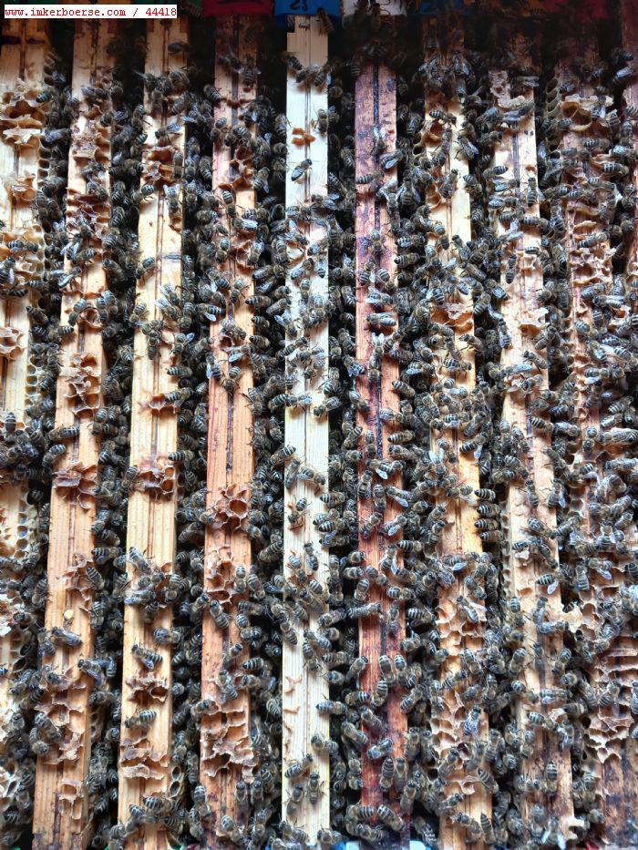 Wirtschaftsvölker auf 10 Waben, Dadant US mit F1 Königin. Preis = 180,0 Euro/Volk. [Beute kann evtl. mit erworben werden, Preis nach Vereinbarung]