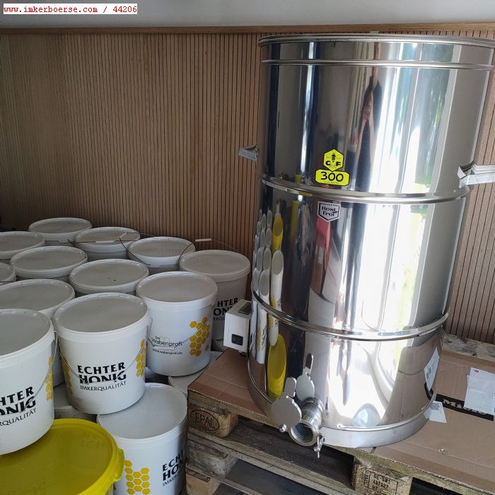 Der Honig ist bereits gesiebt und gerührt und befindet sich in 25 kg bzw. 40 kg Hobocks.