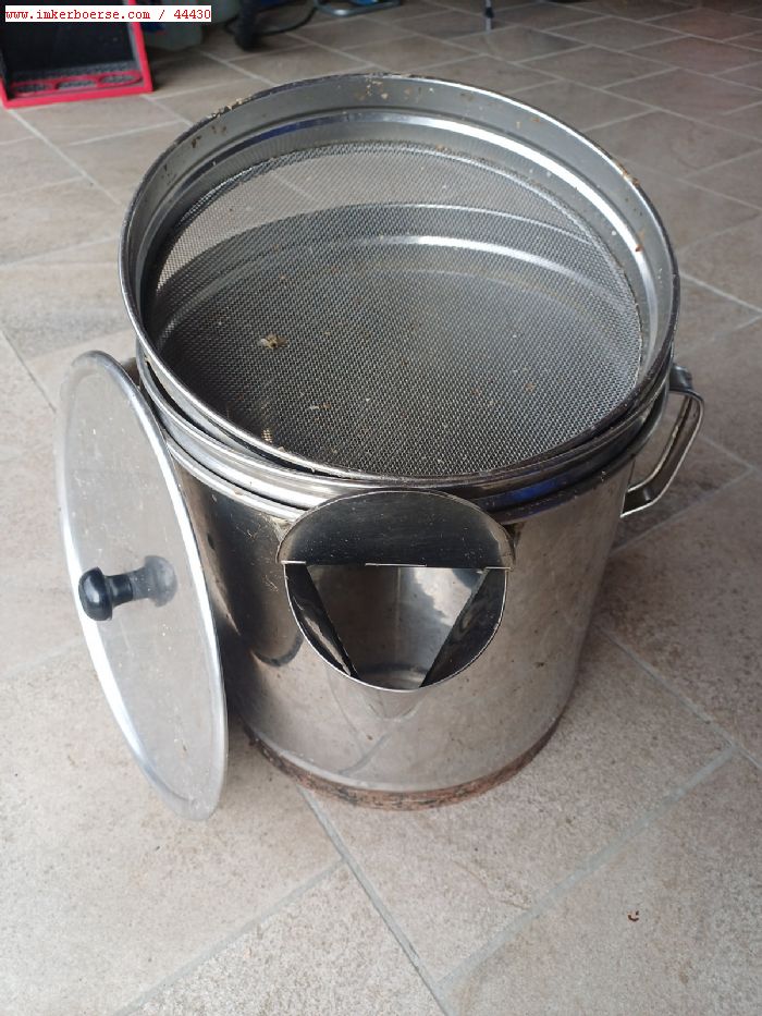 Verkaufe aus Imkerei-Auflösung einen gebrauchten Siebkübel aus Edelstahl. Fassungsvermögen ca. 30 kg, mit Doppelsieb und Auflagedeckel. Nur Selbstabholung. Preisvorstellung 50 Euro.
