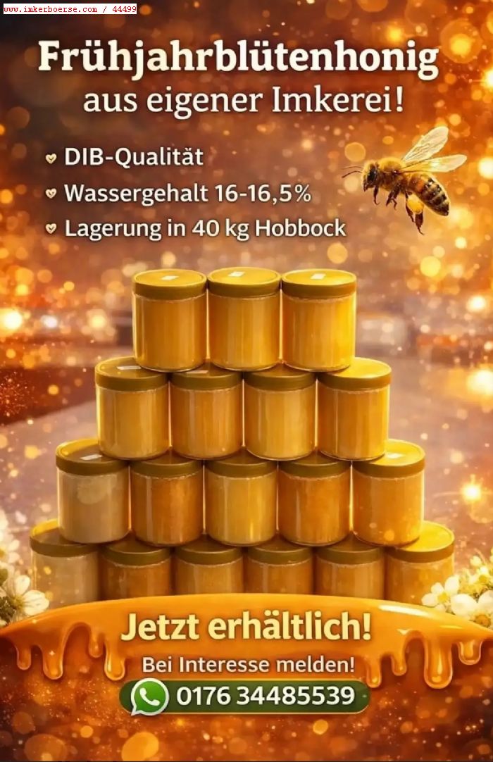 Biete hochwertigen, naturbelassenen Frühjahrblütenhonig aus eigener Imkerei an.
