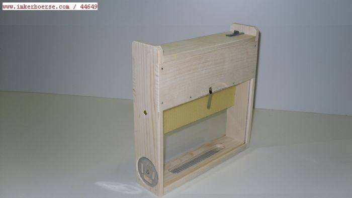 Vorteile dieser EWK's in 1/3 DN- Maß: 1. Kunststoffscheiben. 2. Kein Wabenrahmen nur ein Oberträger. 3. Ausgebaute Wabe samt Bienenbesatz entnehmbar. 4. Mittelwandstreifen bereits angelötet 5. Fluglochrosette u. Lüftungsschieber aus Edelstahl. 6. Fluglochrosette versenkt. 7. Lüftungsschieber im Boden eingelassen. 8. Königinnen- Absperrgitter auswechselbar. 9.Maße 240 x 240 x 60 mm. 10. Gewicht ca. 0,7 kg. 11. Für alle Belegstellen geeignet. Staffelpreise bitte anfragen Weitere Informationen: https://www.ferienhaus-simmeth.de