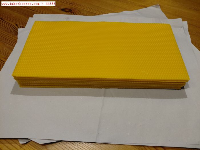 Biete Mittelwände im Zandermaß aus eigenem offenen Wachskreislauf, hoher Anteil an Entdeckelungswachs. Betriebsweise nur mit org. Säuren kein Thymol. ca 11 Stück pro Kilo. VB 16€ pro Kilo. ab 5 Kilo 15€ zzgl. Versandkosten.