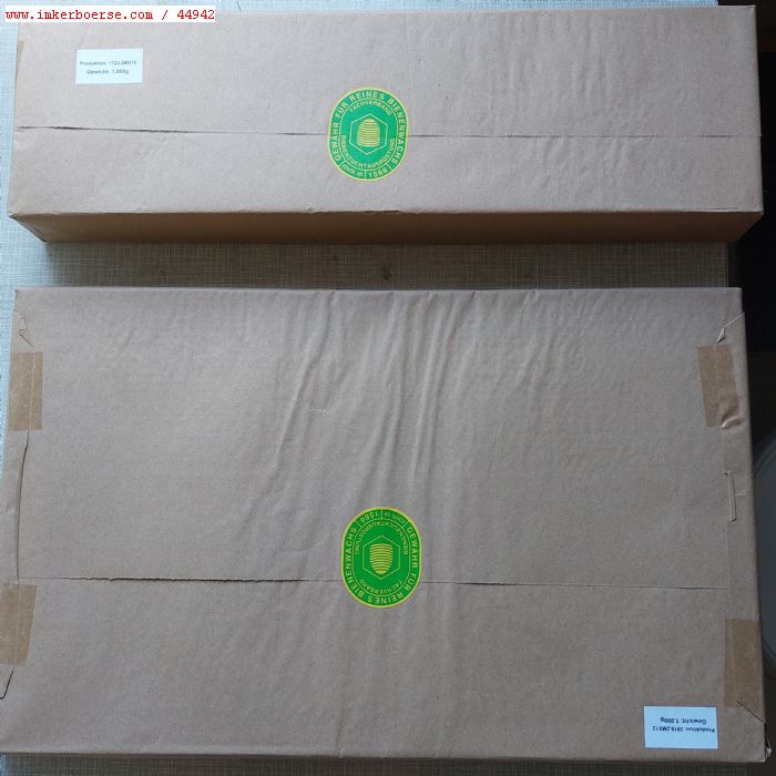 da ich mich verkleinere verkaufe ich ca. 100 selbstgebaute stabile und gut erhaltene holzzargen.bruträume 10zander,lärche.honigräume 10 zander 2/3 weihmutkiefer,teilweise unbenutzt.imkerei mit naturwabenbau,keine behandlungsrückstände möglich ausser organischen säuren.preissvorstellung 10€ pro zarge.