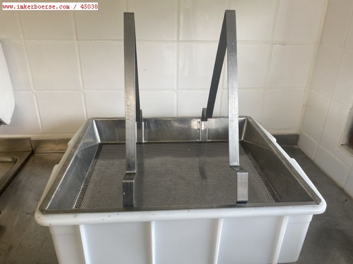 Biete gebrauchtes Entdeckelungsgeschirr (Edelstahl)für 2 Personen (Wanne, Lochblech-Siebboden, Ablagefach für Rähmchen. € 90,- VB